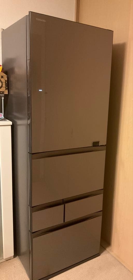 ご覧いただきありがとうございます☺︎最後までお読みいただき、ご理解いただけた方ご検討よろしくお願いいたします^^※ 実重量が100kgを超えた場合、搬出・搬入それぞれ11,000円(税込)ずつかかるそうです。送料自体はたのメル便の為、無料でさせていただくのですが搬入時に11,000円をドライバーさんへ直接手渡ししていただく必要があるそうなので、ご理解いただける方ご検討よろしくお願いいたしますm(_ _)mまた、送料がかなりかかってくるのでお値下げ不可とさせていただきます。TOSHIBA(東芝)製の大型ノンフロン冷凍冷蔵庫「GR-S460FZ (ZH)」の出品です。2020年製で、全体的にきれいな状態を保っています。スタイリッシュな鏡面ガラス風のデザインで、インテリアにもなじみやすく、容量もしっかりあるため、ファミリーにもぴったりのモデルです。【商品概要】メーカー:TOSHIBA 東芝ライフスタイル株式会社型番:GR-S460FZ(ZH)製造年:2020年容量:全体 461L(冷蔵室 339L/冷凍室 122L)サイズ(約):幅650×奥行650×高さ1833mm重量:約107kg冷媒:R600a(ノンフロン)コンプレッサー方式:シクロペンタン使用(環境配慮)【状態】動作確認済み(冷蔵・冷凍ともに正常に冷えます)気になる箇所は画像10枚目に載せておりますので、ご確認お願いします。の箇所以外にもスレキズや、テープの跡が少しある所があります。使用に伴う小キズ・スレはありますが、全体的に目立つダメージはなく美品な方だと思います。※あくまで中古品のため、細かな点を気にされる方はご購入お控えください。ご不明点があればお気軽にご質問ください。ご検討よろしくお願いいたします!傷や汚れ等、お写真にて写しきれてない場合もあります。 専門知識がない為、記載内容に誤りがある場合がございます。素人出品になりますので、全てご理解いただける方ご入札お待ちしております^^| カテゴリー: | 生活家電・空調>>>冷蔵庫・冷凍庫>>>冷蔵庫 |